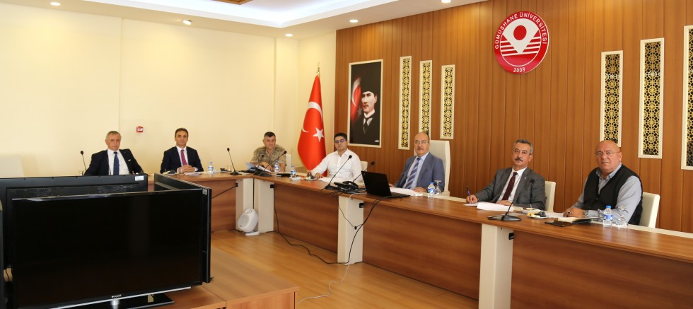 Rektörlük toplantı salonunda Rektörümüz Prof. Dr. Halil İbrahim Zeybek başkanlığında toplanan koordinasyon kuruluna; Gümüşhane Vali Yardımcısı Serhat Doğan, İl Emniyet Müdürü İsmail Karasakal, İl Jandarma Komutanı J. Albay Serhat Demiral, İl Milli Eğitim Müdürü Şener Doğan, Belediye Başkan Yardımcısı Necati Yılmaz ve İl Nüfus ve Vatandaşlık Müdürü İsmail Türk katıldı.