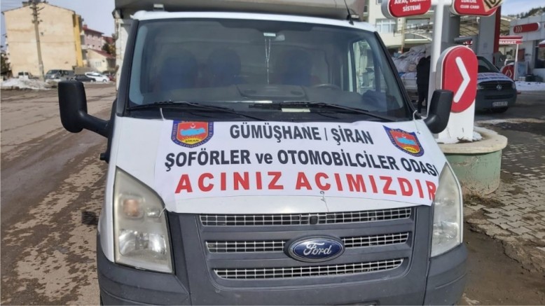 Şiran şoförler ve otomobilciler odası tufan tuğ öncülüğünde harekete geçen Şiran esnafı aralarında istişare ederek yakacak, battaniye, tüp, hijyen paketleri, gıda paketleri hazırladı.