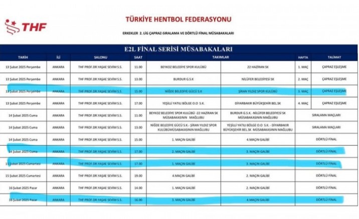 Final kurası ile ilgili konuşan baş antrenör Zeynep Albayrak, “13-16 Şubat tarihleri arasında erkekler 1.lige yükselme final müsabakaları Ankara’da oynanacak. Belirtilen fikstür gereği Ankara’da final oynamaya hak kazanan 8 takım 1. Lige çıkacak 4 takım arasında yer almak için mücadele verecek ve bu mücadeleler sonucunda 4 takım 1.lige yükselecek. Takımımız Şiran Yıldız hentbol takımı ise 13 Şubat tarihi saat 15. 00 da Niğde Belediye Gücü hentbol takımıyla eleme müsabakası yapacak ve kazanan 1.lige yükselmiş olacak, takımımızın müsabakayı kaybetmesi halinde ise sıralama maçları yaparak maçlarını tamamlayacak. Şiran Yıldız Hentbol takımı bütün hazırlıklarını 1.lige çıkmak için yapmakta çalışmalarını en iyi şekilde sürdürmektedir. Ankara‘da yapılacak olan final müsabakalarını en iyi şekilde gerçekleştirerek 1.lige çıkacaktır” dedi.