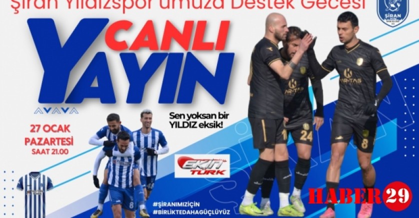 Bölgesel Amatör Ligdeki temsilcilerimizden Şiran Yıldızspor, kulübün geleceğini şekillendirmek ve başarılarına katkı sağlamak amacıyla “Destek Gecesi” düzenleyecek.Aytaç Öksüz‘ün sunumuyla 27 Ocak Pazartesi günü saat 21.00’de düzenlenecek gece Ekin Türk TV ekranlarından canlı olarak yayınlanacak.