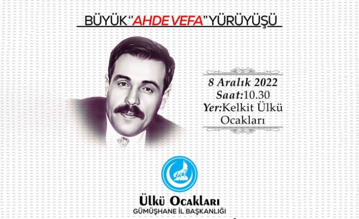 8 Aralık Perşembe günü 10.30’da Kelkit Ülkü Ocakları İlçe Başkanlığı önünde başlayacak program için Gümüşhane’den saat 9.00’da hareket edilecek.