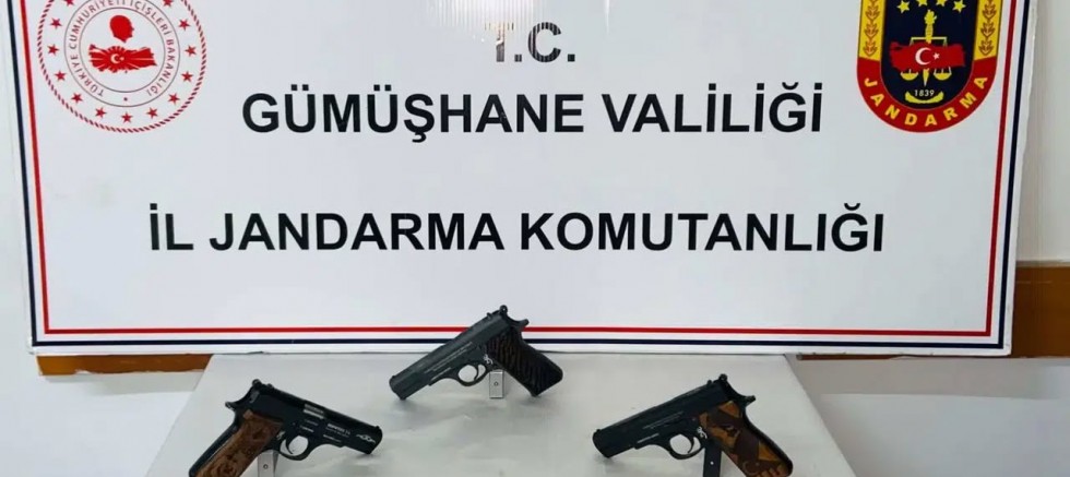 Şüpheli araç Torul ilçe girişinde kurulan kontrol noktasında durduruldu. Jandarma ekiplerinin yaptığı kontrolde araçta 3 adet el yapımı tabanca ve bu tabancalara ait 3 adet şarjör ele geçirilerek muhafaza altına alındı.