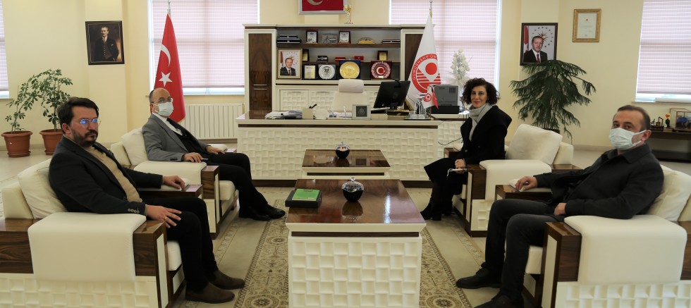 Rektörlük makamında gerçekleşen ziyarette Trabzon Devlet Tiyatroları Müdürü Elvan Saliha Karahasan ile birlikte Üniversitemiz Tiyatro Kulübü Akademik Danışmanı Oğuz Han Karahan, Sağlık, Kültür ve Spor Daire Başkanlığı Şube Müdürü Yunus Yılmaz yer aldı. Gerçekleştirdikleri ziyaretten dolayı mutluluk duyduğunu ifade eden Rektörümüz Prof. Dr. Halil İbrahim Zeybek, “Her sanat dalının olduğu gibi tiyatronun da toplum üzerinde yapıcı bir rolü bulunmaktadır. Türk tiyatro sanatçısı, yönetmen, oyuncu ve yapımcı olan Muhsin Ertuğrul’un da dediği gibi, ‘fırın açmayan ülkede insanlar aç kalır, ölür; ama tiyatro açmayan bir ülkede insanlar ruhen aç kalır, birbirini öldürür.’ Bu sebeple de ülkemizde bölge tiyatrolarına duyulan gereksinimin her geçen yıl ağırlığını hissettirdiğini görmekteyiz. Trabzon’da başarılı çalışmalarını yakından takip ettiğimiz Trabzon Devlet Tiyatrosu’na bağlı sanatçılar Üniversitemizde de bizlere unutulmayacak değerde bir gösteri yapmışlardı. Bu sebeple de hem bu nazik ziyaretlerinden hem de Üniversitemize yapmış olduğu katkılarından dolayı Trabzon Devlet Tiyatroları Müdürü Sayın Elvan Saliha Karahasan ve ekibine çok teşekkür ediyor, karşılıklı iş birliğinin bundan sonra da artarak devam etmesini temenni ediyorum” sözlerine yer verdi.
