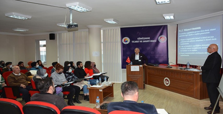 Eğitim programının açılışında yürütülen projenin ve düzenlenen eğitimlerin şehrimize ve ülkemize hayırlı olmasını dileyerek katılımcılara göstermiş oldukları yakın ilgi için teşekkür eden Gümüşhane Ticaret ve Sanayi Odası(GTSO) Başkanı İsmail Akçay, '' Doğu Karadeniz Kalkınma Ajansımızın desteği ile yürüttüğümüz proje kapsamında TS EN ISO 9001 Kalite Yönetim Sistemi Temel, Dokümantasyon, İç Tetkik ve Proses Eğitimi konularında toplam 5 gün ve 40 saat sürecek bir eğitim programımız mevcut. Hepimiz biliyoruz ki ülkemiz kalkınacaksa bu bilgi ekonomisi ile olacak. Beş günlük eğitim programı kapsamında sizlere Çalışma hayatımızda, işyeri ve iletmelerimizde karşımıza sıklıkla çıkacak kalite yönetim sistemi üzerine önemli bilgiler aktaracağız. Türk Standartları Enstitüsünde görev yapan ve ülkemizin önemli uzmanlarından bir tanesi olan Kadir Yaşar Efendioğlu sizlere TS EN ISO 9001 Kalite Yönetim Sistemi, Temel Dokümantasyon, İç Tetkik ve Proses Eğitimi konularında çok değerli bilgiler aktaracak. Gümüşhane Sanayici ve İşadamları Derneği Gümüşhane Şubemizin yapmış olduğu proje ve Doğu Karadeniz Kalkınma Ajansımızın desteği, Gümüşhane Ticaret ve Sanayi Odası katkıları ile sizleri burada ağırlamış olmaktan duyduğumuz mutluluğu da sizlerle aktarmak istiyorum. Yine bizleri bu tarz eğitimler düzenlememizde bizleri teşvik eden üyelerimize, girişimcilerimize siz değerli katılımcılarımıza da teşekkür etmek istiyorum. Çünkü sizler olmazsanız, sizler üretmezseniz sizler ticaret yapmazsanız Gümüşhane Ticaret ve Sanayi Odası olmaz. Burası sizin yeriniz. Eğer sizler varsanız burası var ve bu eğitimler düzenleniyor. Bugün ülke olarak geç kaldığımız konuların bir tanesi de üreticinin ve özel sektörün standartları ve standartların kendi ürettikleri ürün ve hizmete sağlayacağı katma değeri yeterince bilmemesi ve bunun için uygulamaması. Türk özel sektörü olan diğer dünya ülkeleri tarafından uygulanan ve çağımızın gerekleri doğrultusunda sürekli revize edilen Kalite Yönetim Sistemlerini iyi bir şekilde takip etmeli ve ülkemizde yetkilendirilmiş kuruluş olan Türk Standartları Enstitüsünün kalite yönetim sistemlerini en iyi şekilde işletmelerimizde uygulamalıyız.