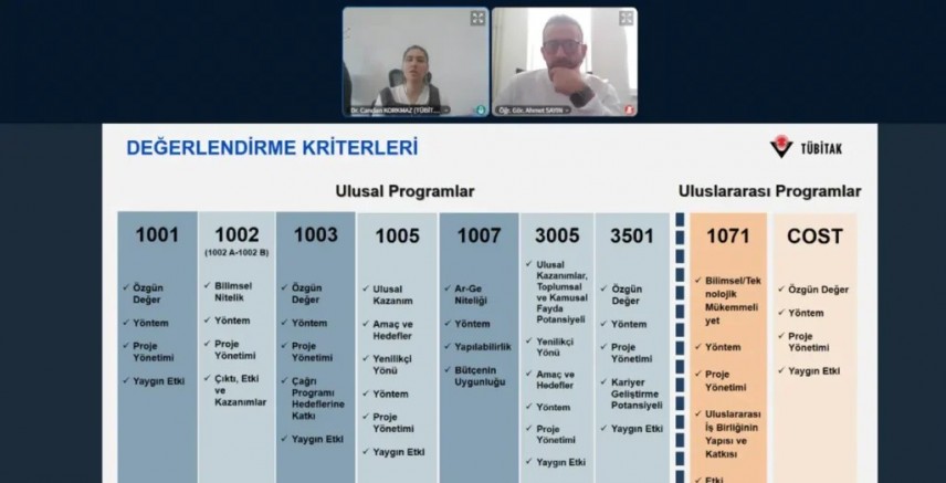 Üniversite akademisyenleri, araştırmacılar ve proje yürütücülerin yoğun katılımıyla gerçekleşen etkinlikte, TÜBİTAK ARDEB Personeli Candan Korkmaz, destek programları ile ilgili güncel bilgileri paylaşırken, başvuru süreçlerindeki kritik noktalar ve dikkat edilmesi gereken hususlara dair detaylı bilgiler aktardı.