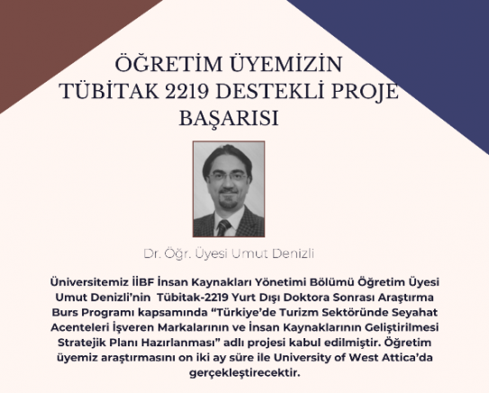 Konuya ilişkin olarak Dr. Öğr. Üyesi Umut Denizli’yi tebrik eden Rektörümüz Prof. Dr. Halil İbrahim Zeybek şunları söyledi: “Dr. Öğr. Üyesi Umut Denizli hocamızın projesinin TÜBİTAK tarafından kabul edilmiş olmasını memnuniyetle karşılıyoruz. Bu projeyle elde edilecek bulguların, turizm sektöründe faaliyet gösteren işletmelerin etkinliğini artırma konusunda güçlü bir yol haritası sunacağına inanıyoruz. Öğretim üyemizin bu önemli araştırma için University of West Attica'da on iki ay boyunca çalışacak olması, uluslararası iş birliği ve bilgi paylaşımı açısından da değerlidir. Bu süreçte elde edilecek bilgi ve deneyimler, üniversitemizde ve Türkiye’de turizm sektörünün gelişimine önemli katkılar sağlayacaktır. Biz de kendisine başarılar diliyor, projenin turizm sektörüne ve ülkemize önemli faydalar sağlamasını temenni ediyoruz.”