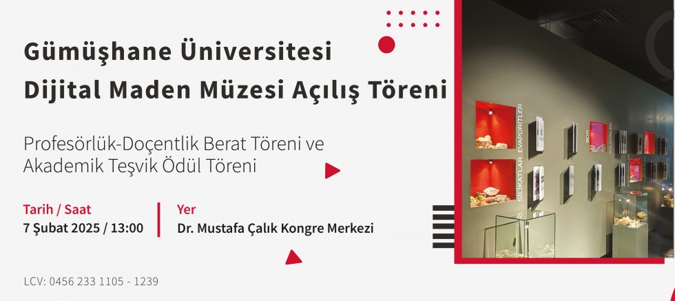 Dr. Mustafa Çalık Kongre ve Kültür Merkezi’nde yapılacak olan törende Üniversitemizden akademik başarılarını sürdüren 30 Profesör ve 70 Doçent’e berat belgeleri takdim edilecek ve Akademik Cübbe Giyme Töreni olacak. Bununla birlikte Üniversitemizin akademik kadrosunun gelişimi ve başarılarının somut bir göstergesi olarak 2023 yılı akademik yayınlarından dolayı teşvik kazanan 92 akademisyenimize de Yayın Teşvik Belgesi verilecek. Ek olarak Gümüşhane Üniversitesi Dijital Maden Müzesi’nin açılışı da gerçekleştirilecek.