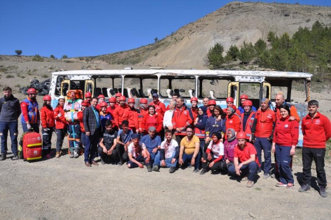 Yaralıların feryatlarını tiyatrocular gibi canlandıran ekipler yaraları göstermek için makyaj yaparken acil müdahale alanında medikal tedavileri yapılan yaralılar 112 ekipleri ile uygun hastanelere nakledildi. Yapılan tatbikat gerçeği aratmazken, eğitim sonunda UMKE gönüllüsü 21 sağlık personeline başarı belgeleri verildi.
