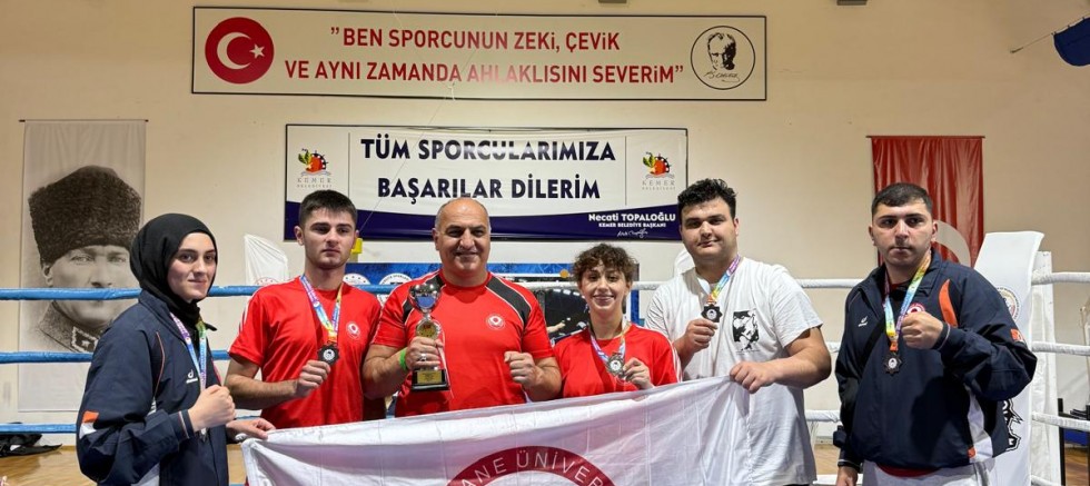 3-7 Mayıs 2025 tarihleri arasında Antalya’nın Kemer ilçesi Göynük Atatürk Kapalı Spor Salonu’nda düzenlenen Türkiye Üniversite Sporları Federasyonu (TÜSF) ÜNİLİG Muaythai Türkiye Şampiyonası’nda üniversitemiz, önemli başarılara imza attı. Sporcularımız şampiyonayı 1 gümüş, 4 bronz madalya ile tamamlarken, üniversitemiz takım halinde “En Teknik 3. Üniversite” kupasının da sahibi oldu.