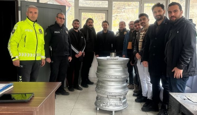 Tasarlanan soba Akçakale’deki trafik uygulama noktasında kullanılmak üzere İl Emniyet Müdür Yardımcıları Özkan Eroğlu, Mücahit Kaya, Asayiş Şube Müdürü Halit Bozkurt ve emniyet çalışanlarına teslim edildi.