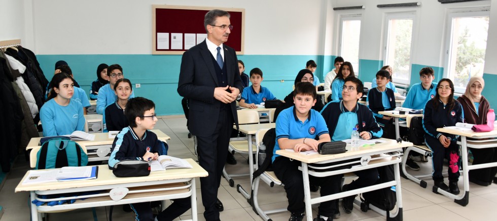 Ziyaretin ilk durağında, lise yolculuğuna hazırlanan 8. sınıf öğrencileriyle sınıflarında buluşan Vali Baruş, sıcak ve samimi bir atmosferde gençlerle sohbet etti.