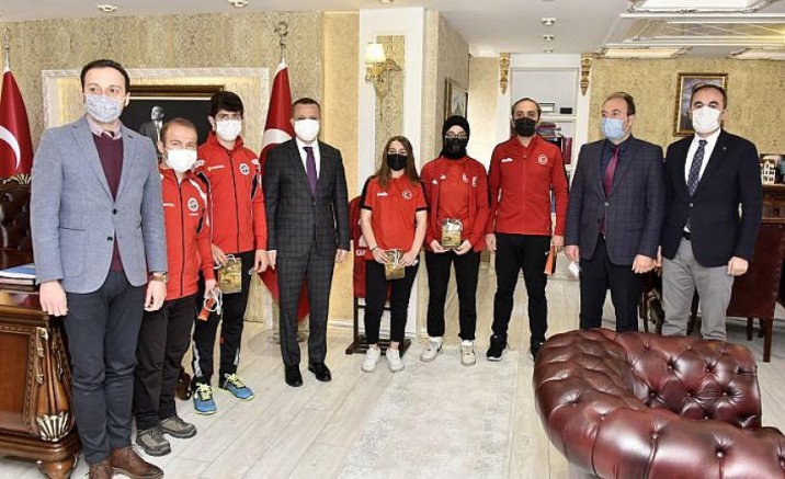 Vali Taşbilek, geçtiğimiz aylarda Romanya’da yapılan Dünya Bilek Güreşi Şampiyonasında 9 madalya kazanarak dikkatleri üzerine çeken Gümüşhaneli bilek güreşi sporcularıyla, Adana’da yapılan Türkiye Kros Şampiyonasında derece yapan sporcuları makamında kabul etti. Gençlik ve Spor İl Müdürü Mücahit Atalay, Spor Hizmetleri Müdürü Selahattin Taş, antrenörler ve sporcuların katıldığı programda sporcu ve antrenörlere ödüllerini takdim eden Vali Taşbilek, hem sporcuları hem antrenörleri başarılarından dolayı tebrik etti. Sadece bilek güreşi branşında Gümüşhane’de 40 milli sporcu bulunduğunu belirten Vali Taşbilek, “Maşallah diyorum. Allah yardımcıları olsun. İnşallah bundan sonra da daha güzel başarılara imza atarlar. Burada emeği geçen antrenörlerimizi Gençlik Spor teşkilatımızı, müdürümüzü ve değerli arkadaşlarımızı, yöneticilerimizin hepsini tebrik ediyor, teşekkür ediyorum. Bunlar hep birlikte koordineli çalışmalar” dedi. Bu başarılarda en önemli unsurun gençler olduğunu vurgulayan Vali Taşbilek, “Evlatlarımız ve onların azmi ile ailelerinin verdiği destekler çok önemli. Onlara da çok teşekkür ediyorum. Gümüşhane özellikle bireysel sporlarda çok iyi bir düzeyde. Çok önemli başarılara imza atıyoruz. Gerek bilek güreşinde gerek atıcılıkta gerek atletizmde. Bunlar arkadan gelen sporcularımızın da motive olması noktasında çok önemli. İlimizin spor altyapısının gelişmesine çok büyük önem veriyoruz. Gençlik ve Spor Bakanımıza da teşekkürlerimi iletmek istiyorum, ilimize çok önemli destekleri ve katkıları oluyor. Çocuklarımıza tekrar başarılar diliyorum, her zaman yanlarında olduğumuzu bilmelerini istiyorum” diye konuştu.