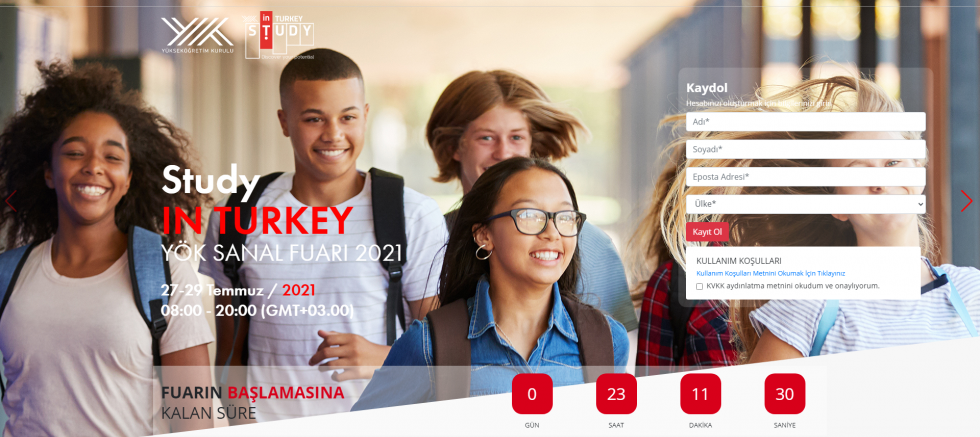 “Study in Turkey YÖK Sanal Fuarı 2021” 27-29 Temmuz 2021- 08.00-20.00 (GMT+3) tarihleri arasında www.virtualfair-yok.gov.tr internet adresi üzerinden gerçekleştirilecektir.