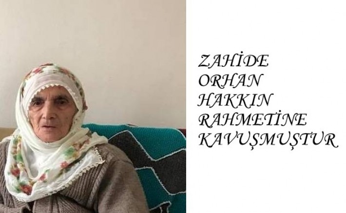 İlçemiz Zigana Köyü Sakinlerinden Gran Mahallesinden Merhum Hasan Orhan eşi,Fehmi Orhan"ın Eşi Zahide Orhan Hakkın Rahmetine Kavuşmuştur,